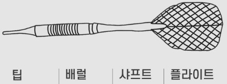다트핀은 팁, 배럴, 샤프트, 플라이트 부분으로
